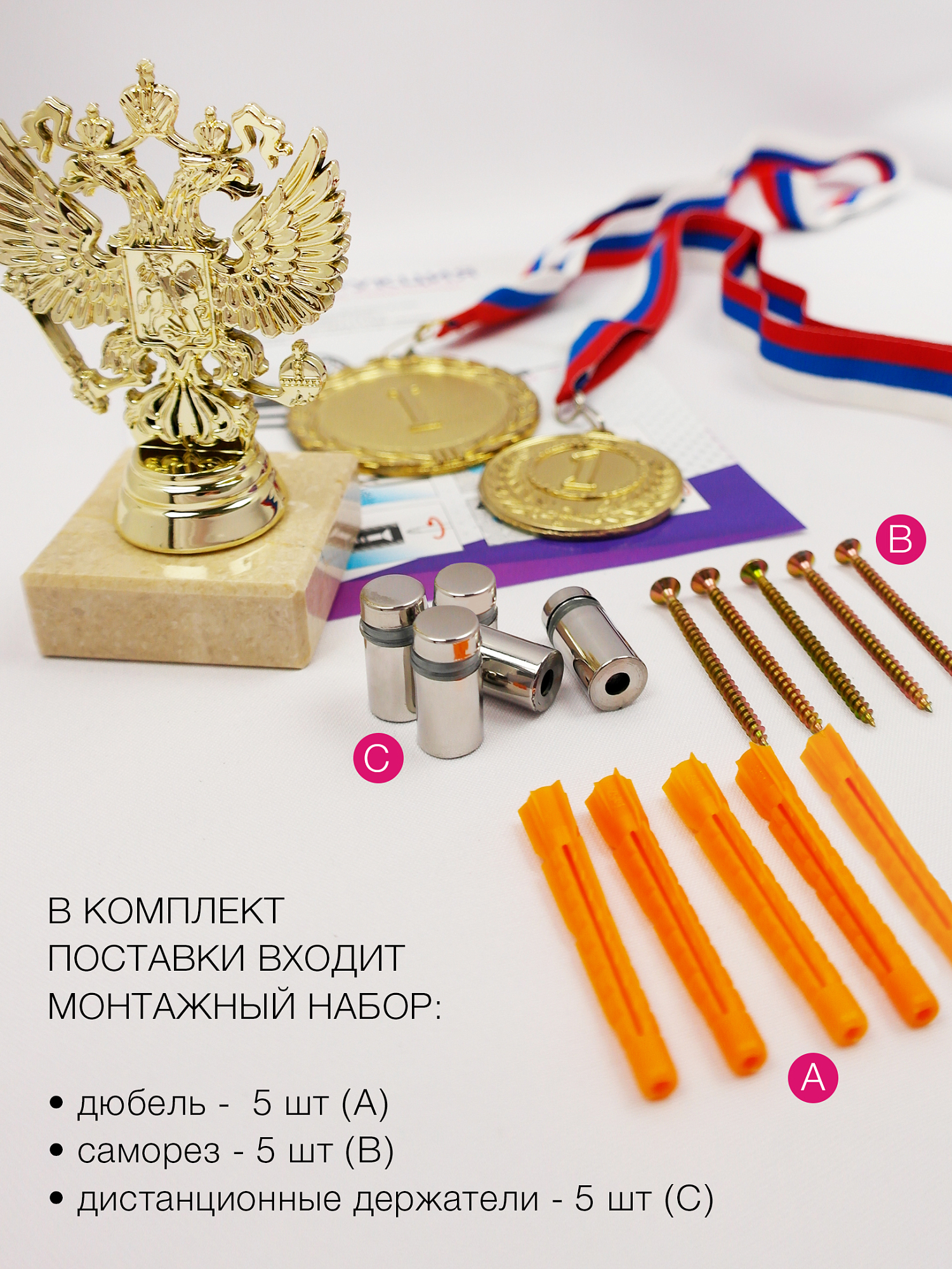Медальница с полкой Лайт "Бодибилдинг" от компании "На Победе" - это результат многолетней работы над совершенствованием систем хранения наград. Бескомпромиссное качество нашей продукции подтверждено тысячами отзывов наших довольных покупателей. Мы используем самый качественный металл, профессиональные металлические дистанционные держатели и стильную упаковку. Никаких дешевых картонок для упаковки, деревянных чопиков для отрыва от стены и других составляющих гаражных поделок! Мы ценим наших покупателей и предлагаем продукт, продуманный до мелочей нашими инженерами-конструкторами и дизайнерами для удобного, стильного и безопасного размещения завоёванных вами трофеев и изготовленный в промышленных условиях с соблюдением всех норм и требований к изделию. Наш оригинальный держатель для медалей обладает стильным дизайном, великолепно вписывается в любой интерьер и призван вдохновлять на новые победы и достижения на спортивном Олимпе! Данная модель позволяет гармонично разместить более 50-60 медалей на классических лентах. Полка выдерживает достаточное количество кубков и статуэток. Толщина металла 1.2 мм и отсутствие загиба у полки создаёт впечатление парящих кубков, сама полка не оттягивает на себя акцент, направляя всё внимание завоеванным наградам. С недавних пор наши инженеры добавили новый функционал – теперь дипломы и грамоты можно хранить между стеной и медальницей, удерживать бланки призваны дистанционные держатели: два сверху по бокам и один по центру в нижней части медальницы. На металлической медальнице очень удобно размещать магниты, привезённые на память с соревнований из других городов и стран. Слева и справа на полке есть технологические вырезы, на которых можно разместить вымпелы. Мы изготавливаем медальницы из металла в промышленных условиях и занимаемся этим уже более 16 лет! Покрытие медальницы - полимерная порошковая окраска, сохраняющая презентабельный вид весь срок эксплуатации и абсолютно безопасная для здоровья. Изображение нанесено при помощи ультрафиолетовой печати, оно не стирается и не выгорает со временем. Спортивная медальница от компании "На Победе" - желанный подарок для любого спортсмена - мужчины или женщины. Держатель для медалей станет великолепным подарком к любому празднику или мероприятию, будь то день рождения, юбилей, 8 марта, 23 февраля, новый год и рождество, а так же ценным подарком на спортивных мероприятиях. Оригинальные медальницы от компании "На Победе" поставляются в красивой коробке-чемодане с ручкой и не требуют дополнительной упаковки. Весь набор креплений и дистанционных держателей уже входит в комплектацию, докупать ничего не потребуется. Ваш чемпион будет доволен! Ширина медальницы - 40 см, высота - 20 см, глубина полки для кубков - 12 см, ширина полки для кубков – 38 см.
