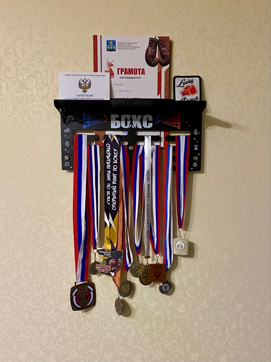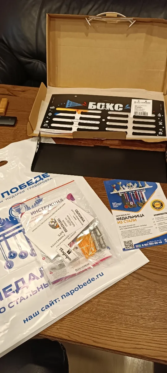 Медальница классная, стильная, прочная! Подарили сыну после очередных соревнований, он в восторге. Полочка удобная, конструкция надежная. Упаковка порадовала, в качестве подарка легко можно преподнести такую медальницу.