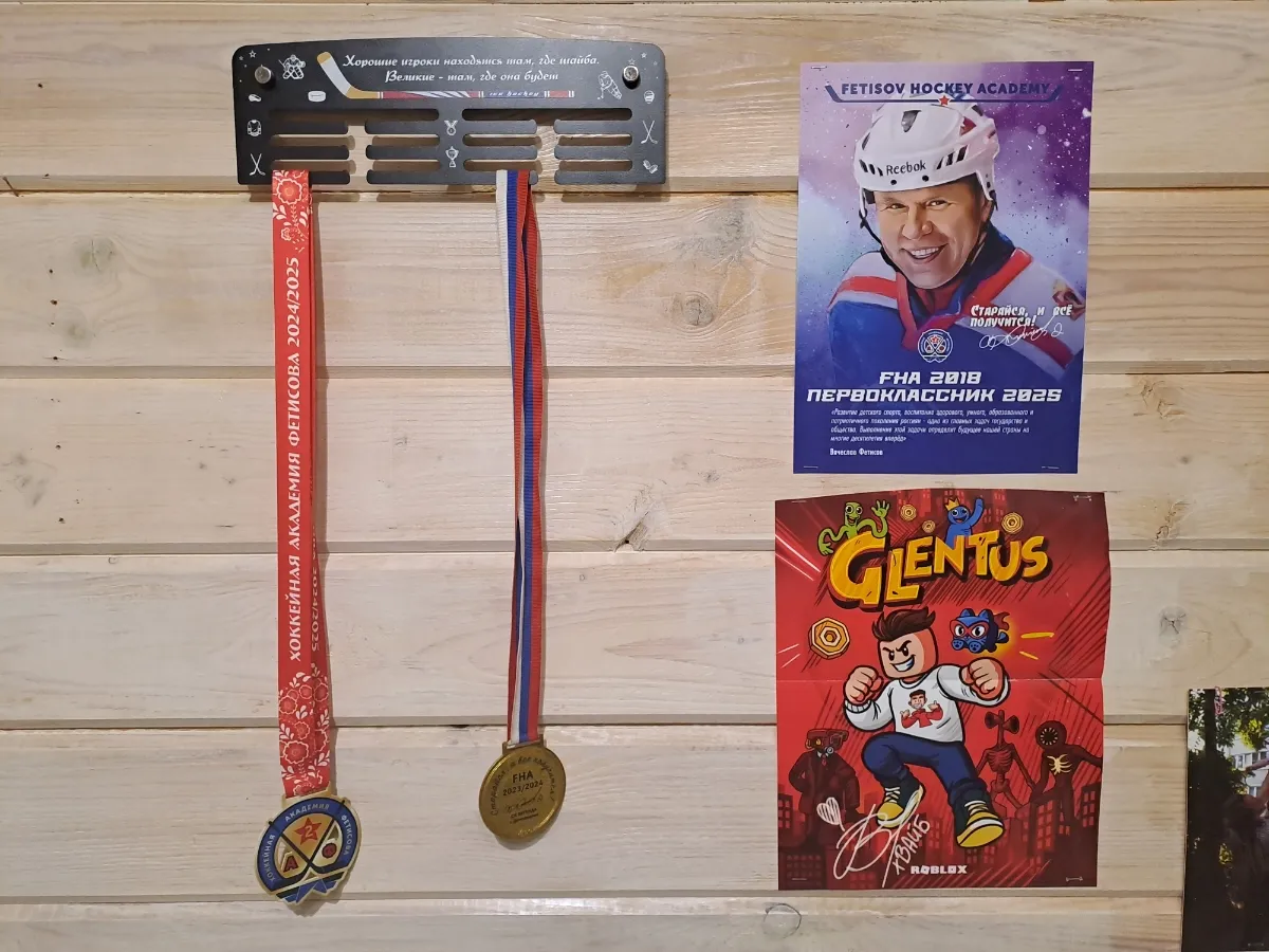 Эта небольшая, но очень крепкая и вместительная медальница порадует любого чемпиона! Изготовлена из стали толщиной 1,2 мм и выдерживает весомую нагрузку, недостижимую для спортивных медальниц из других материалов. Держатель для медалей имеет следующие размеры: ширина - 30,5 см, высота - 10 см. Вы сможете с легкостью разместить порядка 30-40 медалей на стандартных лентах.Покрытие держателя для медалей – порошковая окраска, это промышленный способ окраски, который позволяет создать равномерное, эстетичное и безопасное покрытие на металле по всей площади изделия. Цветная ультрафиолетовая печать – яркое, безопасное и стойкое к смыванию нанесение, которое будет радовать вас первозданными цветами долгие годы.В комплект входит монтажный набор: дюбеля, саморезы и фирменные дистанционные держатели, позволяющие создать отрыв от стены, для удобства размещения ваших медалей. Докупать ничего не придётся – всё уже продумано для вас! Поставляется медальница в крафтовой коробке, защищающей содержимое от повреждений при транспортировке.Данная модель подойдёт любому спортсмену с достаточным количеством трофеев в следующих видах спорта: футбол, хоккей, легкая атлетика марафон триатлон бег ходьба, тяжелая атлетика, пауэрлифтинг художественная и спортивная гимнастика бокс карате кикбоксинг баскетбол теннис волейбол ММА велоспорт, плавание стрельба.