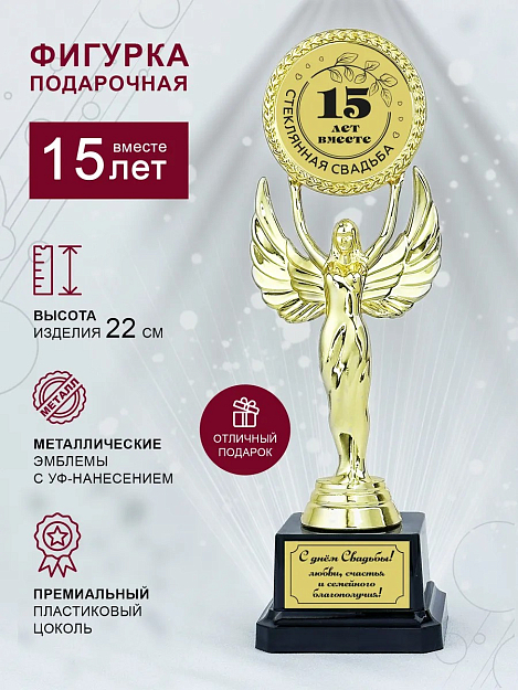 Подарите близким людям сувенир, напоминающий об их долгой и счастливой жизни вместе. Выберите эту статуэтку, чтобы ваше поздравление обрело красивую форму. «Стелла с Днем свадьбы» поможет выразить эмоции без лишних слов.
