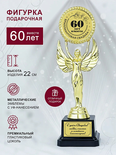 Подарите близким людям сувенир, напоминающий об их долгой и счастливой жизни вместе. Выберите эту статуэтку, чтобы ваше поздравление обрело красивую форму. «Стелла с Днем свадьбы» поможет выразить эмоции без лишних слов.