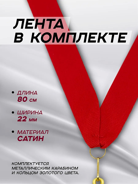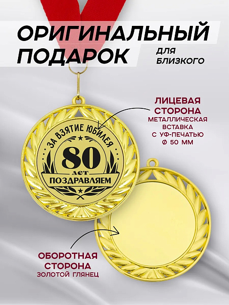 В медали располагается металлический вкладыш, на который нанесено изображение методом ультрафиолетовой печати. Это стойкий, яркий рисунок, который будет радовать глаз своей четкостью долгие годы и не сотрется со временем. В комплекте идет лента (80 см) благородного красного цвета с карабином. Ее можно удобно закрепить, чтобы медаль красиво легла на грудь виновника торжества или просто заняла почетное место в дома, например, в рамке под стеклом.